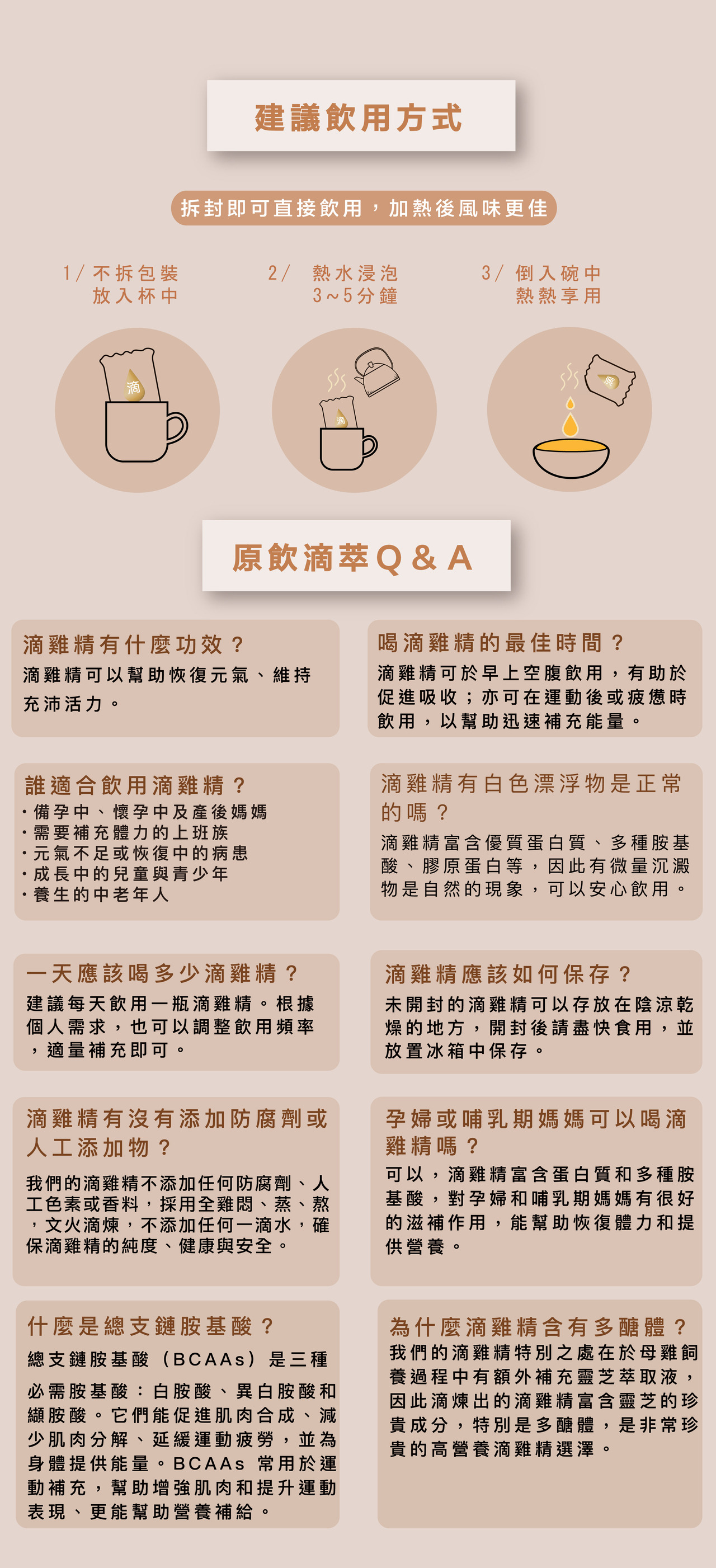 安心選購:無大腸桿菌、無沙門氏菌、無藥殘留、就是要提供給您安心的滋補滴雞精。